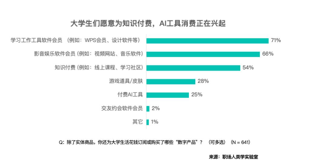 值得留意的是,曾经有25%的受访大学生采办了付费AI东西,AI曾经成为不少大学生的进修伴侣。相信跟着AI东西的进一步进化取普及,为AI付费的大学生将会进一步添加。