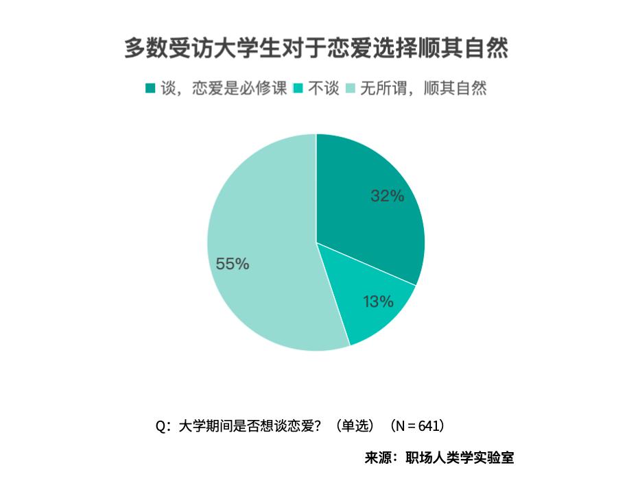 爱情是大学糊口的主要构成部门。正值芳华的大学生们,却只要三成对爱情有炙热的需求。55% 的受访者抱着 “无所谓,顺其天然” 的心态,既不焦炙脱单,也不,从打 “佛系等缘”,还有 13% 干脆 “不想谈爱情”,更专注于本人的节拍。只要32% 的受访者把爱情当 “大学必修课”,情愿自动抓住心动机遇。